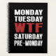 Un planificador práctico con una portada que abarca el triste hecho de la vida que después del lunes y el martes, el resto de la semana laboral es WTF, y el sábado está apenas un respiro de la locura del pre-lunes. ¡Ideal para los que quieran organizarse sin tomarse la vida muy en serio!