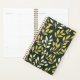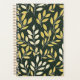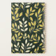 Seamless pattern of stylized yellow and cream leafy branches against a dark green, speckled background.