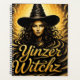 Este extravagante planificador negro y amarillo presenta una pintada de aerosol inspirada en una bruja rodeada por un cielo nublado y las palabras Yinzer Witchz.