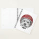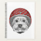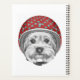 Este diseño presenta un retrato de un Terrier de Yorkshire con un casco de polka verde azulado y rojo punteado.