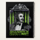 Retrato de Beetlejuice en un esmoquin y corbata de arco, con la frase "Fantasma con más".