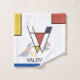 Un monograma artístico, divertido. Aquí está la letra "V". Estilo neoplasticismo, o De Stijl, decoración artística de línea y color, el pájaro gracioso se sienta en la carta. El campo de arte se encuentra bajo la letra. El nombre de la plantilla "VALENTINE" se encuentra debajo de la imagen. Un conjunto elegante y único de toallas de baño para cualquier persona. Este diseño es totalmente personalizable. Puede cambiar o eliminar el nombre de la plantilla y puede cambiar las imágenes. Si desea cambiar las fuentes, colores, tamaños o la composición completa del diseño, no dude en usar el botón "Editar diseño" o "Personalizar" (como puede ser el funda) del color azul para personalizar posterior. Se le transferirá a la "Herramienta de diseño" donde podrá encontrar fuentes, colores, tamaños en el menú derecho; capas, imágenes, elementos geométricos, fondos en el menú izquierdo. Solo sé creativo, personalizar, compra uno, disfruta el fiesta, y sé feliz!