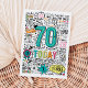 Una tarjeta de cumpleaños 70 al estilo del doodle divertido para celebrar un cumpleaños 70 muy especial. Con un diseño colorido, esta tarjeta añadirá el pop que necesita para un día memorable. Hecho con amor por Oh Gorgeous Studio