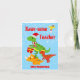 Una divertida tarjeta de agradecimiento de Navidad para profesores con dinosaurios bebés de dibujos animados que llevan sombreros de Santa, sosteniendo regalos envueltos o campanas con un fondo de cielo azul con copos de nieve que caen. Una forma encantadora de decir gracias al maestro de su hijo al final del período escolar, lista para la temporada de vacaciones de Navidad. El divertido texto de la tapa de nieve se puede modificar para personalizar la tarjeta según sus necesidades y luego personalizarla con el nombre del profesor y agregar o modificar los mensajes interiores para hacer de esta una tarjeta de agradecimiento realmente única y personal. Un diseño dulce y lindo para niños y niñas que aman los dinosaurios.