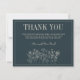 Una preciosa tarjeta de agradecimiento con "Gracias" y texto en la parte delantera, y una foto de la novia y el novio en la parte trasera. La parte de texto se puede escribir para enviarla a cada invitado o quitarla para escribir una nota a cada invitado. Coordina perfectamente con la colección de Colores Curados de Adelaida.