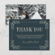Una preciosa tarjeta de agradecimiento con "Gracias" y texto en la parte delantera, y una foto de la novia y el novio en la parte trasera. La parte de texto se puede escribir para enviarla a cada invitado o quitarla para escribir una nota a cada invitado. Coordina perfectamente con la colección de Colores Curados de Adelaida.