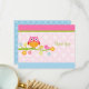 Adorable, de colores vivos en tonos rosa y verde, Amas y Lechuza en Rama Gracias Tarjeta.