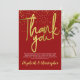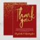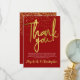 Una preciosa tarjeta de agradecimiento. Esta tarjeta fabulosa presenta tipografía con efecto dorado sobre un fondo rojo rubí con confeti dorado. Fácil de personalizar con tus propios detalles de agradecimiento. Sería perfecta para dar las gracias después de una fiesta de aniversario de bodas de 40 años, o para dar las gracias por otro tipo de evento.