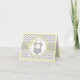 Impresión de chevron gris y blanco y puente de polka-punto sobre tela con cordón de arco amarillo de seda de maíz y adornos y etiquetas de apariencia 3D gracias al diseño de la tarjeta.