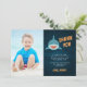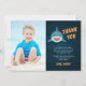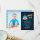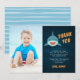 Cute plano, tarjetas de agradecimiento para el cumpleaños de tu pequeño entusiasta del tiburón... un tiburón sonriente sobre un fondo azul marino ondulado, con "gracias" y tu mensaje y firma personales. Personaliza con una foto favorita del chico de cumpleaños para un toque personal "guapo".