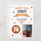 Moderno Baloncesto Ball Foto de Coach Card. Una tarjeta de entrenador de agradecimiento personalizada y moderna con baloncesto, nombre del entrenador en la cinta, foto del personalizado, nombre del equipo, nombre del jugador y número. Puede cambiar cualquier texto de la tarjeta.