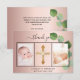 Añade 2 o 3 de tus propias fotos y una nota de agradecimiento. Un fondo de aspecto metálico lujoso, dorado rosa, con texto y marco negros. Decorado con un espigón de eucalipto. El texto: Gracias en la parte delantera y sus nombres en la parte trasera están escritos con un elegante guión con letras a mano con guiones.