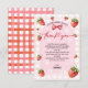 ¡Termina la celebración "dulce de berry" de tu pequeña con un toque de corazón! 🍓 Esta adorable tarjeta de agradecimiento incluye fresas encantadoras y suaves tonos rosados, perfecta para expresar su gratitud a los huéspedes después del primer cumpleaños de su hijo. Una forma dulce y elegante de decir "gracias" que combina a la perfección con la decoración fiesta de la temática de las bayas.