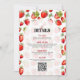 Este bonito diseño de Fiesta de ducha para bebés presenta un adorable marco de fresa roja sobre una tipografía blanca de personalizable negro.