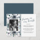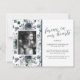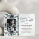 Tarjeta de agradecimiento del funeral conmemorativo con fondo floral de una acuarela azul rústica, foto de la persona que ha fallecido, elegante mensaje de apreciación personalizado, su nombre y fechas de nacimiento/muerte.