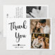 Elegante, Minimalista guión con letras de mano - Boda blanco y negro - Collage de fotos de agradecimiento Tarjeta. Elegante boda multifoto tarjeta de agradecimiento con dos (2) fotos en la parte delantera y una (1) foto en la parte posterior. Con el texto "Gracias" en una letra manuscrita de escritura tipográfica escrita a mano en color negro sobre fondo negro. Personalice el nombre personalizado y el mensaje de agradecimiento. Si prefiere escribir a mano la nota, simplemente elimine el texto de ejemplo para hacer más espacio. Si necesita ayuda o un elemento que coincida, póngase en contacto con el diseñador.