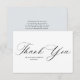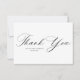 Una tarjeta de agradecimiento moderna con un guión negro elegante y un mensaje de agradecimiento a sus invitados.