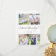 Una elegante tarjeta de fotos de la boda con un maravilloso collage de fotos de las recién casadas. La imagen de la novia y del novio y el color y el texto de la espalda pueden ser personalizados. Añade un mensaje personal de agradecimiento y puedes subir tu propia foto.