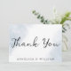 Esta simple tarjeta de agradecimiento minimalista de bodas de playa incluye fuentes clásicas y modernas de escritura sobre un polvoriento fondo abstracto de color azul y blanco inspirado en el océano. Usted puede personalizar fácilmente esta tarjeta de agradecimiento de boda del océano con sus propios detalles usando este diseño de temática oceánica y la paleta de colores costeros. Es versátil y se puede utilizar para combinar muchas ideas bodas y decoración sobre la temática de la playa. Gracias a estas bodas de playa minimalistas y elegantes, son perfectas para las parejas que aman el mar.