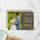 Esta foto de la pareja de bodas, gracias a la tarjeta plana, incluye una hermosa foto boda de la novia y el novio. Ambos están vestidos con su atuendo boda y sonriendo mientras se miran entre ellos. El interior de la tarjeta está en blanco y se puede personalizar con un mensaje personalizado. Fácil plantilla le permite añadir su foto y detalles a esta tarjeta.