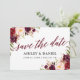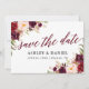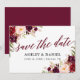 Moderna y elegante caligrafía, acuarela Borgoña Marsala Boda Floral Ahorra La Tarjeta De Fecha