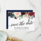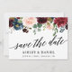 Moderna y elegante caligrafía, acuarela Borgoña Marsala Blue Floral Wedding Guardar La Tarjeta De Fecha - Azul Atrás