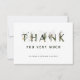 Esta carta de agradecimiento boda presenta letras de follaje tropical color agua verde y flautas hojas de oro con un patrón de hojas de plátano en la parte posterior. Perfecto para bodas, cumpleaños, graduaciones y otros eventos. >>> Vea toda la colección >> https://www.zazzle.com/collections/tropical_foliage_green_collection-119021829937676776