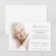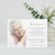 Tarjeta de agradecimiento del Personalizado de Solidaridad Fotografía Funeral. Un mensaje limpio, simple y sincero de "Gracias". Personaliza con una buena imagen de tu ser querido. Preferible una foto de retrato. Tenemos otras opciones adecuadas para las imágenes en forma de "paisaje". En la parte superior de la foto se añadirá una superposición de foto blanca descolorida para obtener un aspecto suave, esto es opcional o borrar. Comparte esta tarjeta a toda la familia y amigos que han sido un gran apoyo con su atención, amor y amabilidad durante tu tiempo de duelo. Script en Rubor Pink.