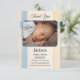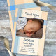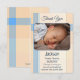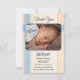 Bebé neutro de género Tarjeta de agradecimiento con una foto de su propio bebé sobre un fondo azul pastel y de melocotón de coral.