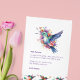 Agradece a tus invitados de la fiesta de cumpleaños con esta tarjeta de agradecimiento que presenta un colibrí acuarela con un ramo floral sobre un fondo blanco.