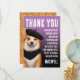Que los invitados de cumpleaños sepan lo mucho que apreciaron sus regalos y su presencia con esta bonita tarjeta de agradecimiento, que incluye obras de arte de un perro galés de Corgi generadas por IA, sonrientes para la cámara y amuebladas de manera inteligente en una boina negra de moda, bandana negra y una bowtie marrón. Copyright W.H. Sim. Todos Los Derechos Reservados. Ver más en zazzle.com/word2art