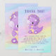 Agradecimiento Cute Purple Dinosaur Baby Shower Tarjeta de agrade