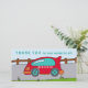 Cute Red Race Car Drawing Boy Cumpleaños Tarjeta de agradecimiento. Carro de raza roja en la carretera. Este diseño viene con un texto Gracias por tu maravilloso regalo y un nombre - personalizar con tu nombre y hacer un cumpleaños único gracias a tu coche para los chicos.