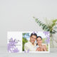 Personalizar de la tarjeta de fotos de bonito Purple Daisies en blanco Gracias con tu propia foto personal y texto. Adecuado para usar para regalos recibidos después de una fiesta de cumpleaños, ducha de novia o boda. Estas elegantes tarjetas de fotos de agradecimiento floral personalizado presentan marañas de lavanda adornando las esquinas con un fondo blanco.