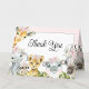 Tarjetas de agradecimiento de baby shower de safari de niña con adorables animales de bebé niña con flores rosadas en un fondo rosa precioso. Estas tarjetas de agradecimiento de baby shower de safari de niña se personalizan fácilmente con su mensaje o déjelas en blanco para su mensaje escrito a mano.