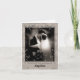 Elegante agradecimiento de boda con un hermoso fondo de damasco beis y una bella fotografía en tonos sepia y texto personalizado en la parte frontal de la tarjeta.