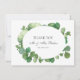 Tarjeta de agradecimiento con hojas de eucalipto que presenta delicadas hojas de eucalipto en acuarela enmarcando su mensaje de agradecimiento en un texto chic gris pizarra, solo agregue el nombre de su familia y la fecha. Puede personalizar con su propio mensaje de agradecimiento en el reverso, una forma perfecta de decir gracias! Diseñado por Thisisnotme