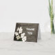 Tarjeta de agradecimiento de boda encantadora y rústica con estilo campestre, con una foto gráfica mejorada de una cerca de madera rústica. Las flores de cornejo blanco decoran la esquina inferior izquierda de la tarjeta. El texto en blanco rústico en el frente y negro en el interior es totalmente personalizable para satisfacer las necesidades de su boda. Productos de boda a juego disponibles.