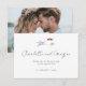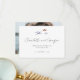 Agradecimiento de Boda Costera con Acuarela de Playa del Océano con Foto - Recordándote el abrazo de los susurros del océano y el suave roce de las orillas arenosas, mientras las olas bailaban en oro, emprendiste tu viaje de amor y unión. Muestra a tu familia y amigos tu sincero agradecimiento por honrar tu día especial con amor y cálidos deseos con nuestra tarjeta de agradecimiento minimalista y moderna con tema de playa. Los nombres de la novia y el novio están en la tarjeta en una fuente de letra cursiva moderna y preciosa, y tu mensaje de agradecimiento con la fecha de tu boda. La parte trasera de la tarjeta presenta tu foto de boda favorita.