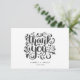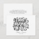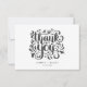Una bonita tarjeta de agradecimiento de boda con caligrafía ornamentada rodeada de elementos de hoja simples y ornamentados y sus nombres y fecha de boda en una fuente moderna minimalista simple.