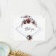 Diseño de tarjeta floral elegante, burdeos y blanco. Cuenta con un hermoso ramo floral de acuarela burdeos y blanco con pino y bayas, un marco de diamante precioso, sobre un fondo blanco. Utilice la herramienta Personalizar para agregar su información. Para artículos coincidentes, visite mi Colección de Ramos Florales de Invierno.
