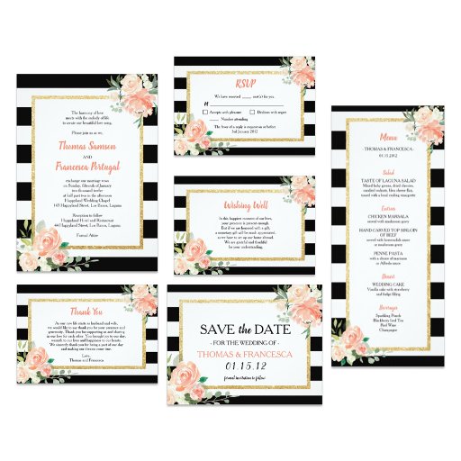 Watercolor Floral Black Stripes Wedding CollectionDiseñado por Glaiza Legaspi