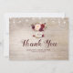 Tarjetas de agradecimiento de boda rústica de flores de acuarela rojas de Borgoña y frasco de Mason