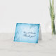 El enfoque de esta tarjeta de agradecimiento de boda de hoja de pergamino azul acuático vintage es elegantes hojas en azul cian, sobre fondo grunge.