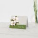 Tarjetas de agradecimiento de boda encantadoras hechas en un fondo que parece lino marfil, en la parte superior frontal y en el interior, con un verde, en la parte inferior frontal. Un hermoso arte vintage de flores de magnolia blancas decora el lado izquierdo y la parte superior interior. El texto en blanco y negro es totalmente personalizable y está listo para personalizar de manera elegante para enviar sus agradecimientos después de su boda.