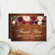 Tarjeta de agradecimiento de boda floral marsala borgoña acuarela de madera rústica