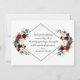 Diseño de tarjeta elegante con hermosos ramos de flores en acuarela burgundy, merlot y azul marino, una forma de diamante doble, sobre blanco y en la parte posterior las mismas flores sobre un fondo azul marino. Podría ser una excelente opción para cualquier boda de temporada, especialmente para bodas de otoño e invierno. Utilice la herramienta Personalizar para agregar su información y realizar cambios. Para artículos coincidentes, visite mi Colección Floral Geométrica Merlot Navy.