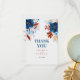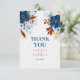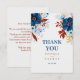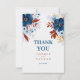Agradece a tus invitados con una tarjeta tan hermosa como tu día especial. Esta elegante y personalizable tarjeta de agradecimiento de boda cuenta con un impresionante diseño floral en una paleta de colores de moda de azul polvoriento y naranja terracota. La parte frontal de la tarjeta es una hermosa pieza de declaración con un elegante "GRACIAS" y un espacio para que agregues tus nombres y fecha de boda.