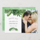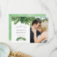 Tarjetas de agradecimiento de boda con hojas tropicales y magnolias blancas de acuarela en verde salvia de moda.