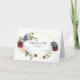 Tarjeta de agradecimiento de boda floral geométrica azul y burdeos.